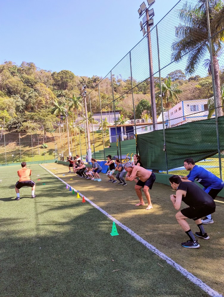A AABB organizou no domingo (21) um aulão de treinamento funcional, coordenado pelo prof. Daniel, que reuniu um público diversificado, abrangendo todas as idades e níveis de condicionamento físico.