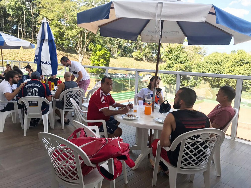 Ao lado de seus familiares e amigos os tenistas que disputaram a Liga Tênis AABB 2018 participaram de churrasco de confraternização e premiação aos campeões e vices nos respectivos 12 grupos da liga.