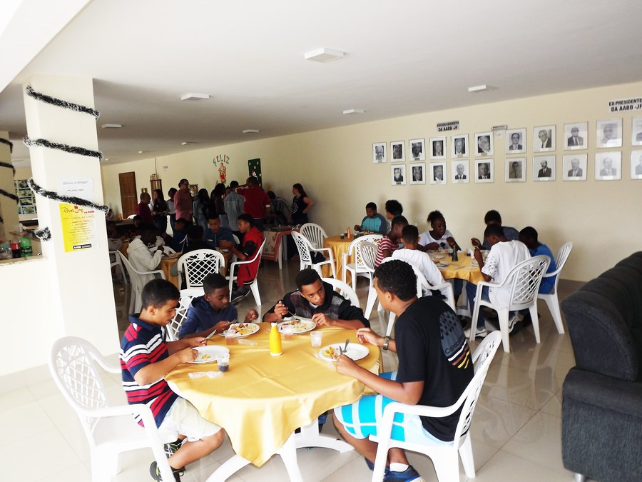 O salão de jogos/deck da AABB Juiz de Fora foi sede do almoço de final de ano dos educandos do Programa Integração AABB Comunidade, parceria firmada entre o Banco do Brasil, ao lado da Fundação Banco do Brasil (FBB), e a Associação Municipal de Apoio Comunitário (AMAC), órgão municipal, que, desde setembro de 2001, desenvolve o programa nas dependências da AABB Juiz de Fora, atendendo a 100 alunos de 12 a 17 anos, sendo 50 no turno da manhã e 50 no turno da tarde.