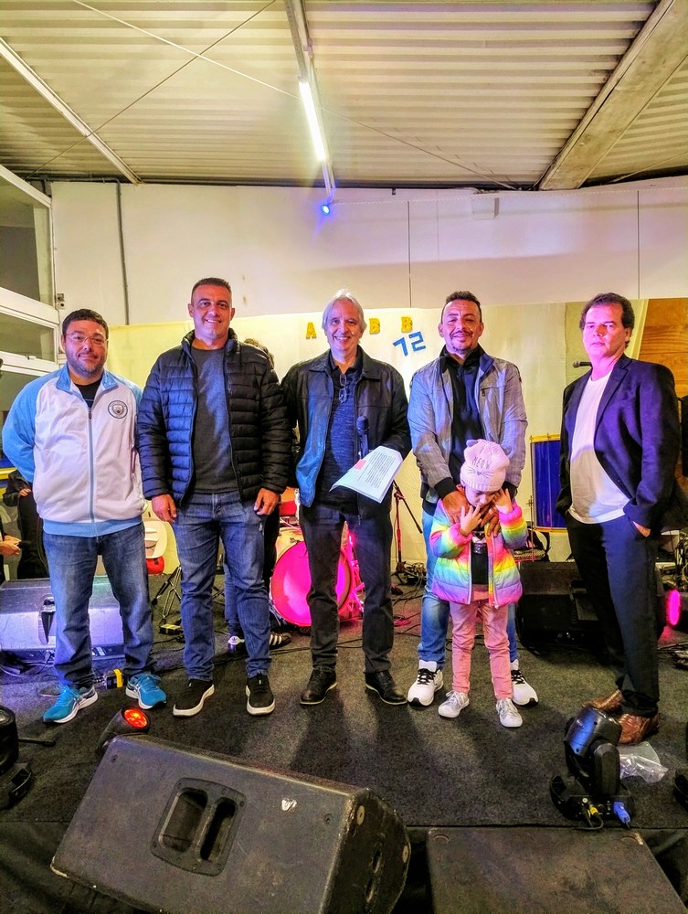Na foto (esq. p/ dir.): Knop, Serginho, Marcelo Caldeira (Departamento Social da AABB-JF), Waltinho, com a filha Lavínia, e Sinei.